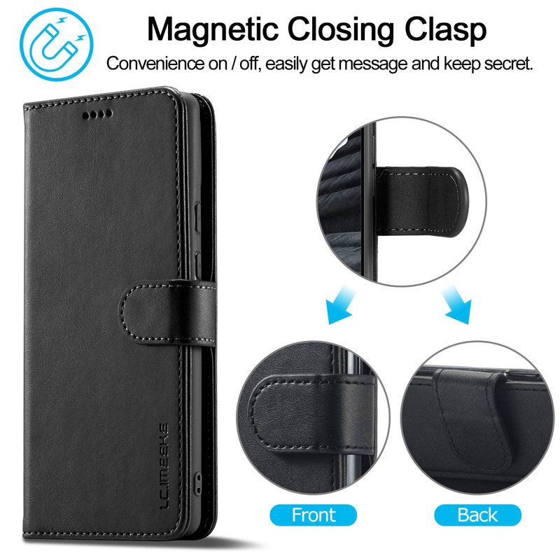 • Magnetisk Stängningsklämma: Med en stark magnetklämma säkerställs att din telefon, pengar och kort förvaras säkert.