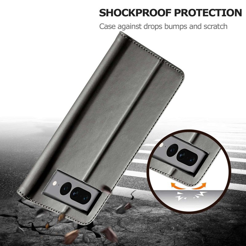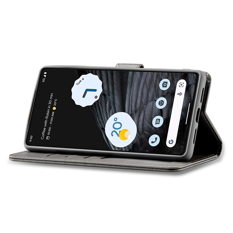 LC.IMEEKE Google Pixel 7 Pro Fodral i Äkta Läder - Grå