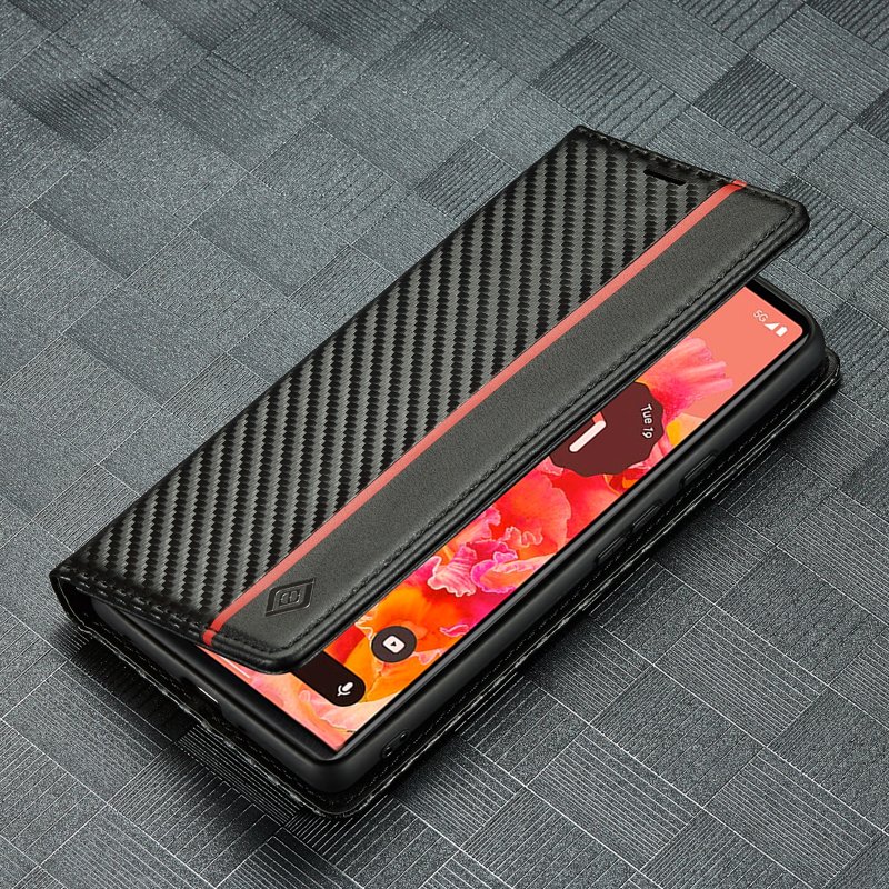 Upptäck LC.IMEEKE Google Pixel 7a Fodral i PU Läder med kolfibertextur. Detta eleganta fodral kombinerar stil och funktionalitet. Det skyddar din telefon samtidigt som det erbjuder praktiska lösningar för kort och kontanter. Perfekt för den moderna användaren som vill ha både säkerhet och stil.