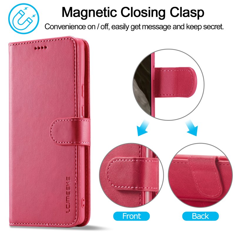- Magnetisk Stängning: Med en stark magnetisk klämma säkerställs att din telefon, pengar och kort förvaras säkert.