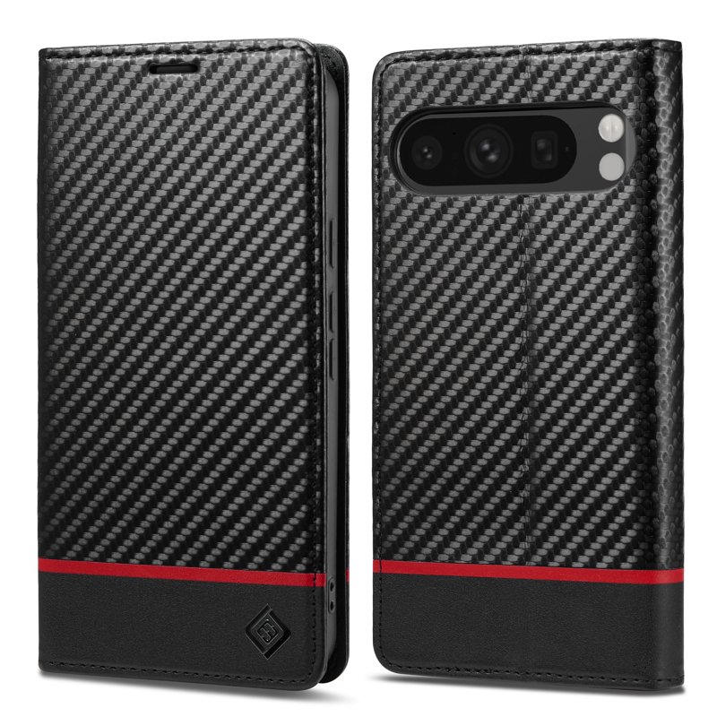 LC.IMEEKE Google Pixel 9 Pro XL Wallet Fodral i Äkta Läder - Svart