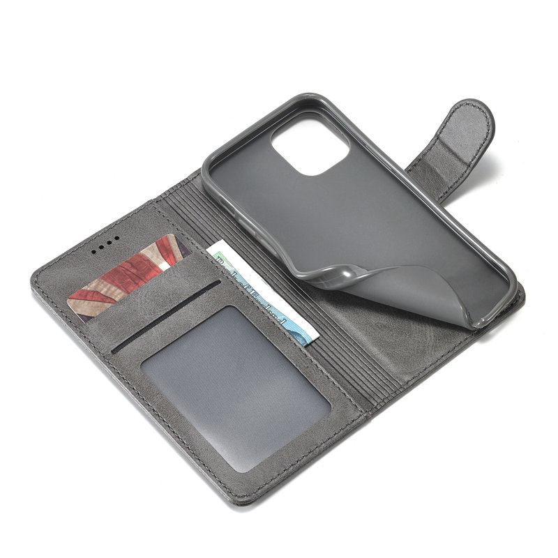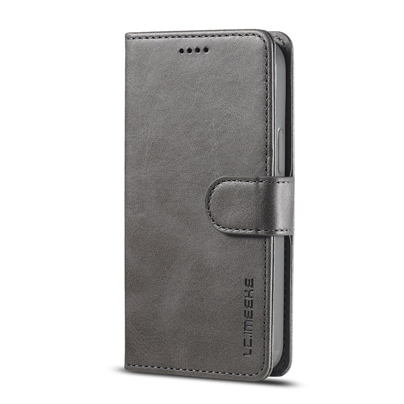 LC.IMEEKE iPhone 12 Fodral i Äkta läder - Grå