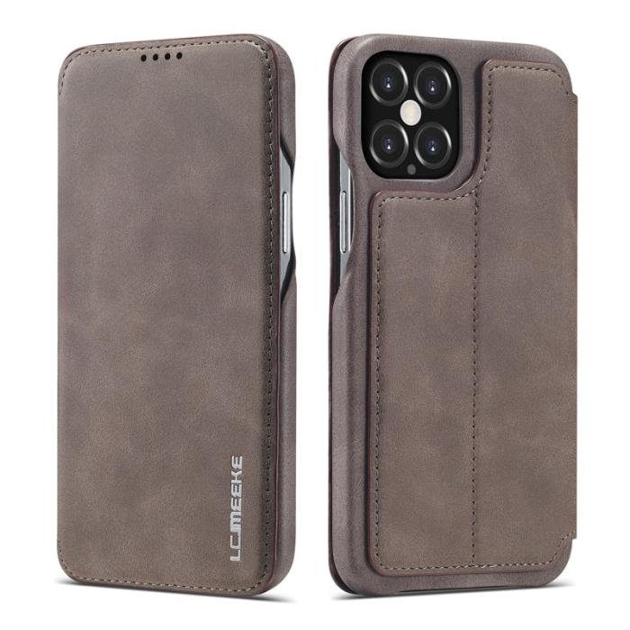 LC.IMEEKE iPhone 12 Pro Fodral i Äkta Läder - Grå