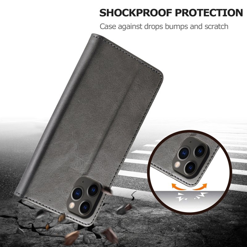 LC.IMEEKE iPhone 12 Pro Fodral i Äkta läder - Grå
