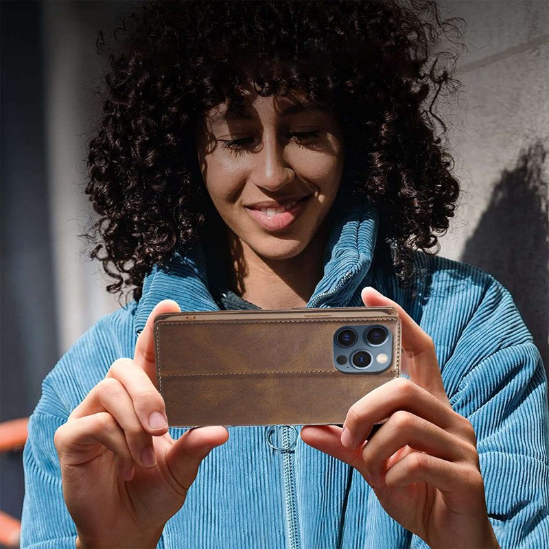 LC.IMEEKE iPhone 12 Pro Max Fodral i Äkta Läder - Brun