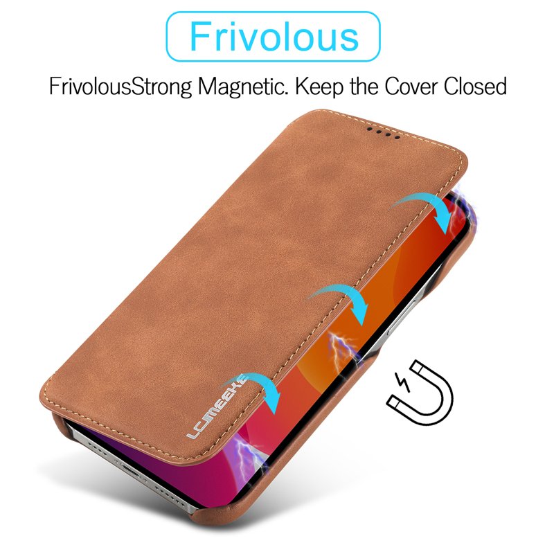 LC.IMEEKE iPhone 13 Fodral i Äkta Läder - Brun