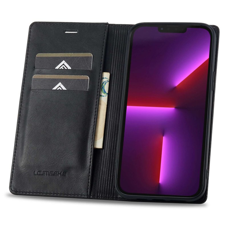 Upptäck LC.IMEEKE iPhone 13 Pro Fodral i Äkta läder - Svart. Detta fodral kombinerar stil och funktionalitet. Tillverkat av högkvalitativt PU-läder och TPU, erbjuder det hållbarhet och skydd för din iPhone. Med smarta fack för kort och kontanter, är detta fodral den perfekta lösningen för den moderna användaren.