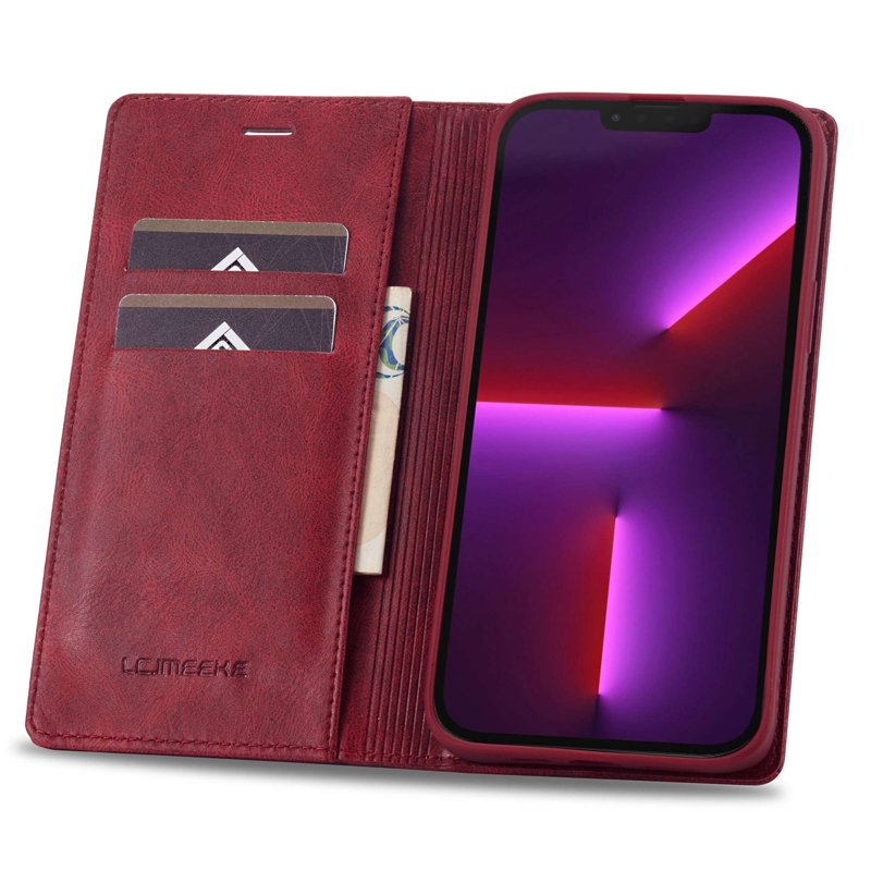 LC.IMEEKE iPhone 13 Pro Max Fodral Äkta läder - Röd