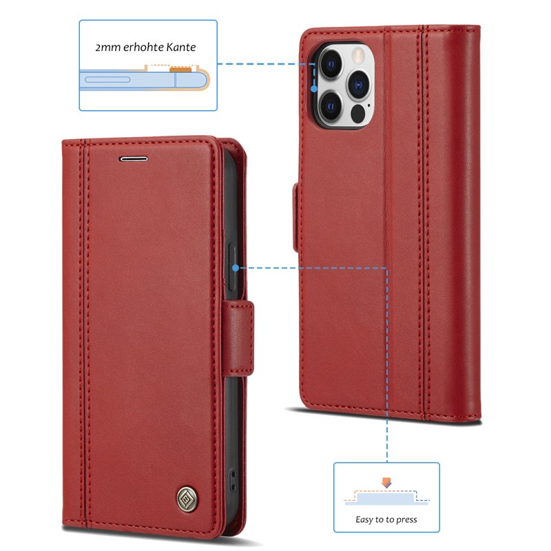 LC.IMEEKE iPhone 13 Pro Skal i Äkta Läder - Röd