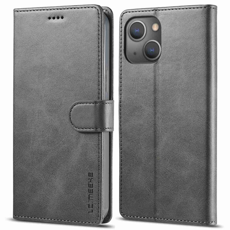 LC.IMEEKE iPhone 14 Fodral Flip Folio PU Läder - Grå