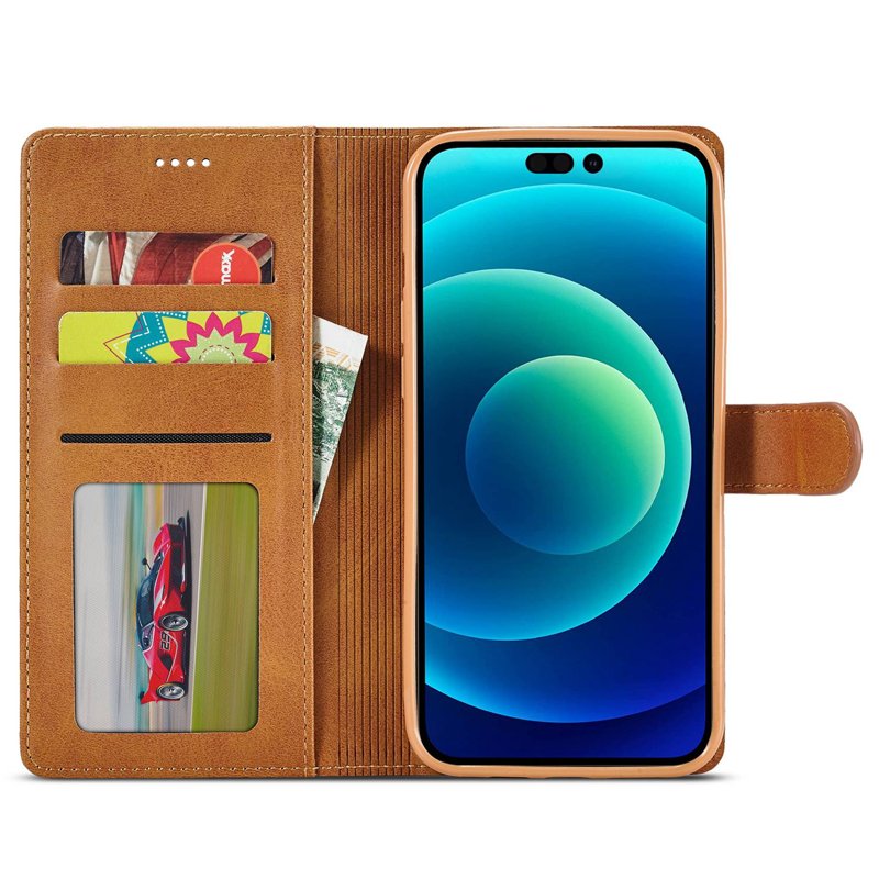 LC.IMEEKE iPhone 14 Fodral Flip Folio PU Läder - Ljusbrun