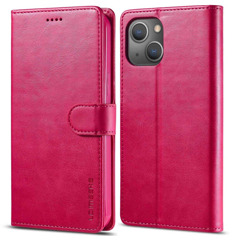 LC.IMEEKE iPhone 14 Fodral Flip Folio PU Läder - Rose