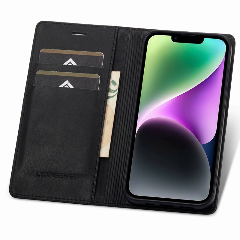 LC.IMEEKE iPhone 14 Fodral RFID Blocking PU Läder - Svart