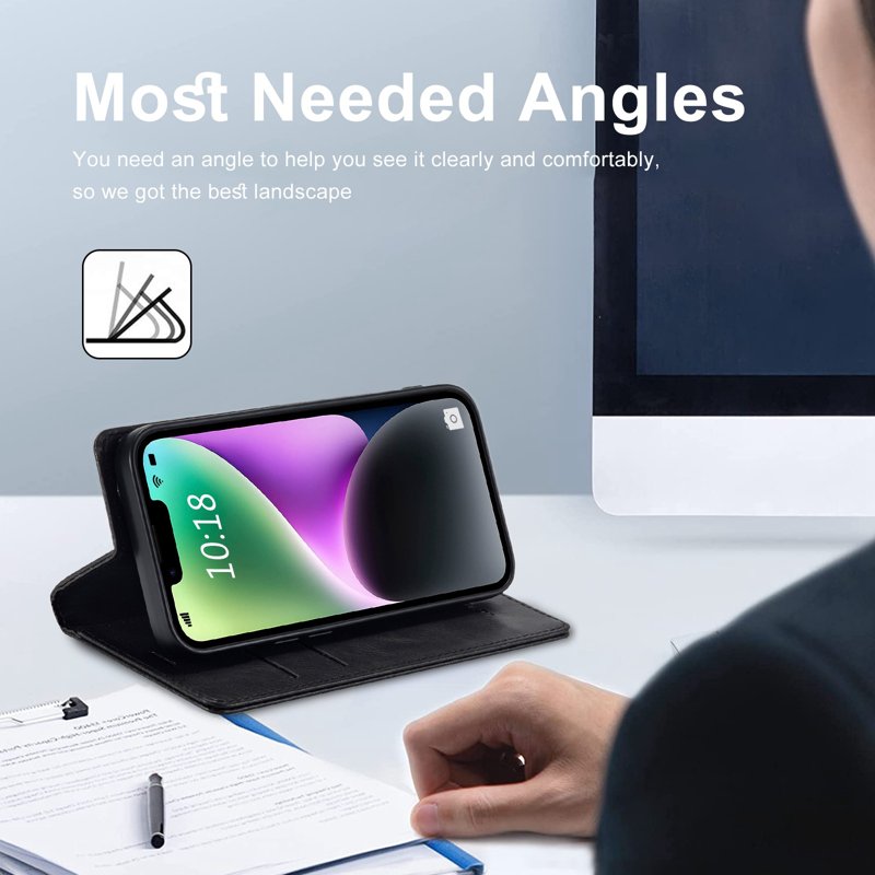 Upptäck LC.IMEEKE iPhone 14 fodralet i svart PU läder. Detta fodral kombinerar stil och funktionalitet. Med RFID-blockering skyddar det din personliga information. Det är både hållbart och praktiskt för dagligt bruk.
