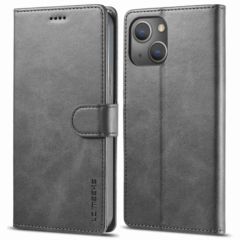 LC.IMEEKE iPhone 14 Plus Fodral - Äkta läder - Grå
