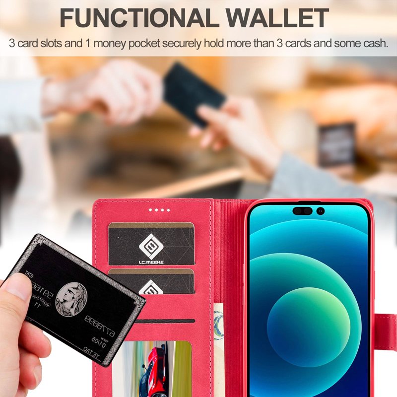 Upptäck LC.IMEEKE iPhone 14 Pro Max Fodral i PU Läder - Rose. Detta eleganta fodral kombinerar stil och funktionalitet. Det är designat för att ge ditt iPhone 14 Pro Max ett fullgott skydd samtidigt som det erbjuder praktiska lösningar för din vardag.