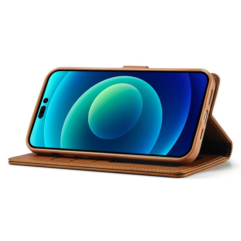 LC.IMEEKE iPhone 15 Fodral Drop Resistant PU Läder - Gul