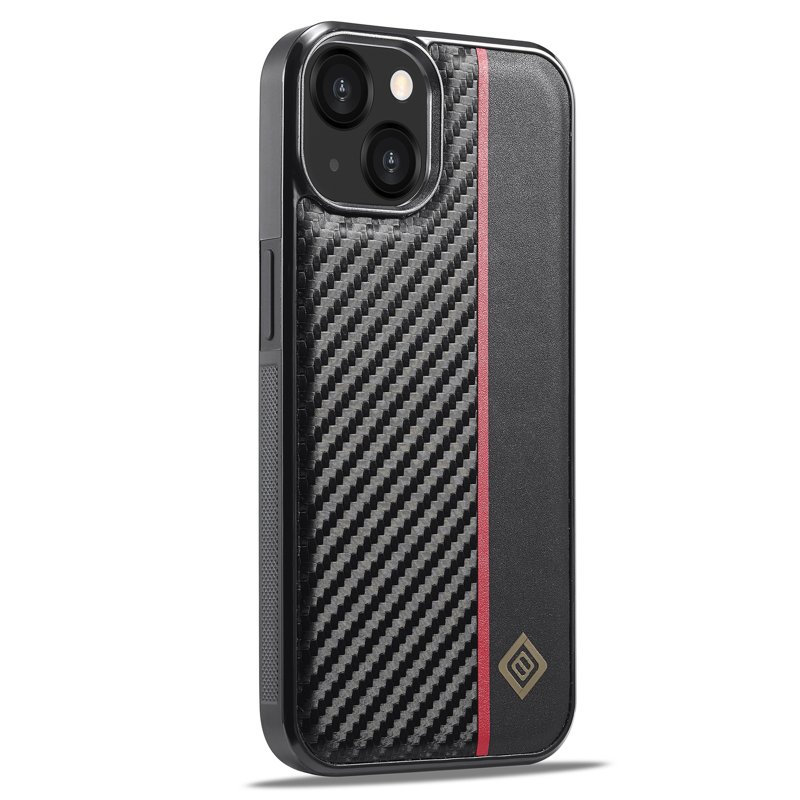 LC.IMEEKE iPhone 15 Plus Fodral - Kolfiber PU Läder - Svart