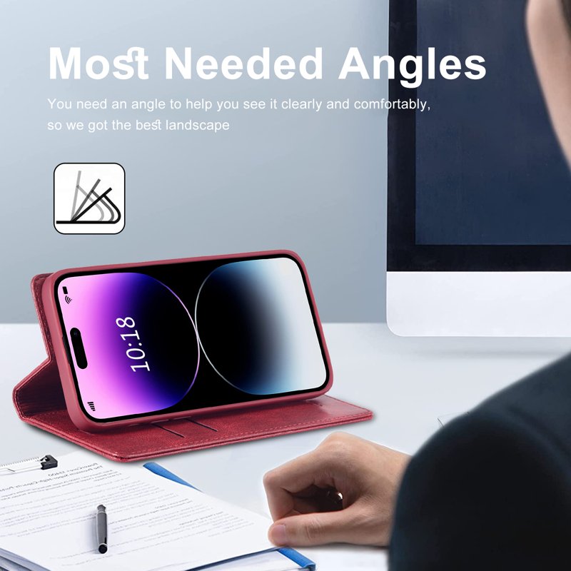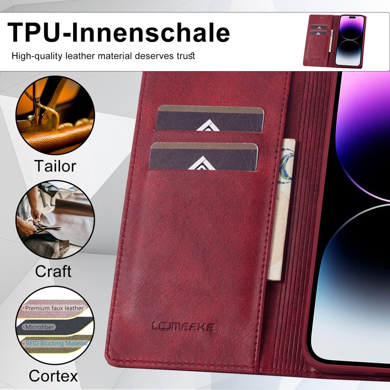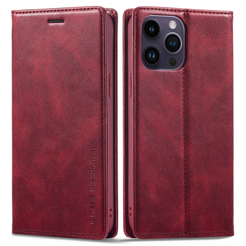 LC.IMEEKE iPhone 15 Pro Fodral Stand Äkta läder - Röd