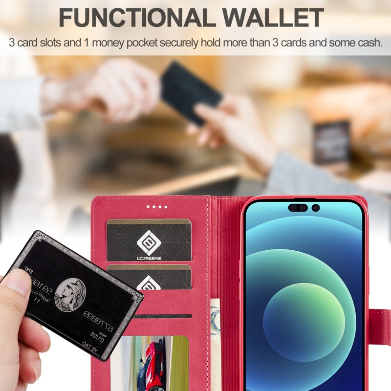 Upptäck LC.IMEEKE iPhone 15 Pro Max Fodral i PU läder. Detta fodral kombinerar stil och funktionalitet. Med sin eleganta design och praktiska funktioner skyddar det din telefon samtidigt som det erbjuder smarta lösningar för din vardag.