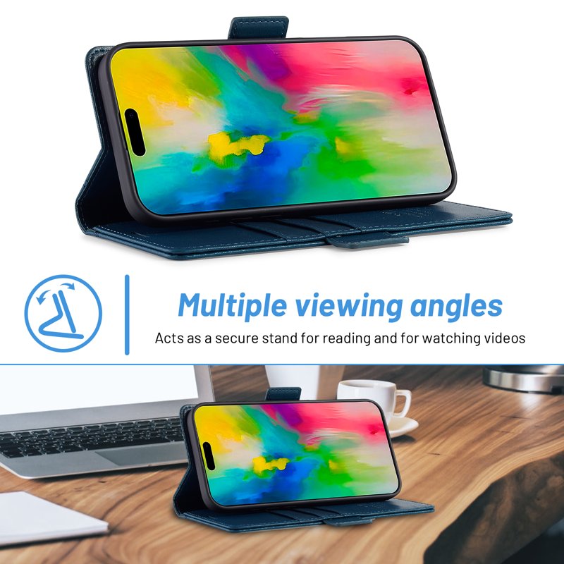 LC.IMEEKE iPhone 16 Fodral Äkta läder - Blå