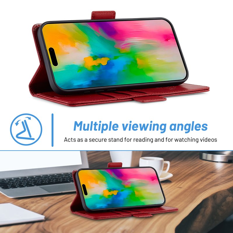 LC.IMEEKE iPhone 16 Fodral Äkta läder - Röd