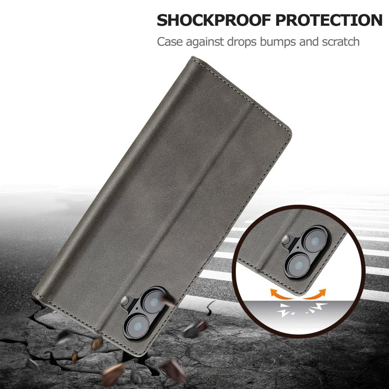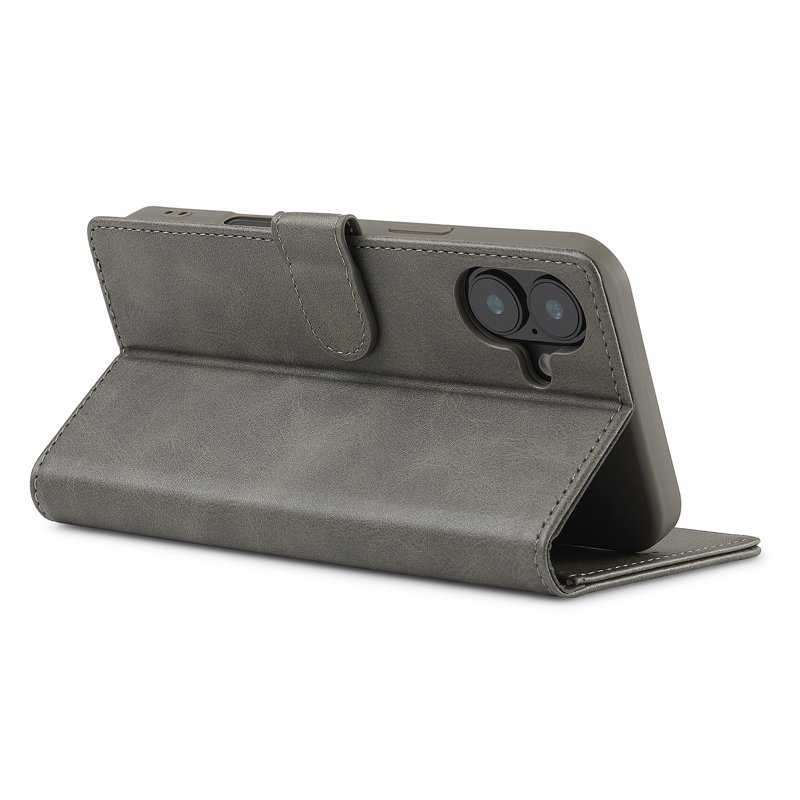 LC.IMEEKE iPhone 16 Fodral Calf Texture PU Leather - Grå