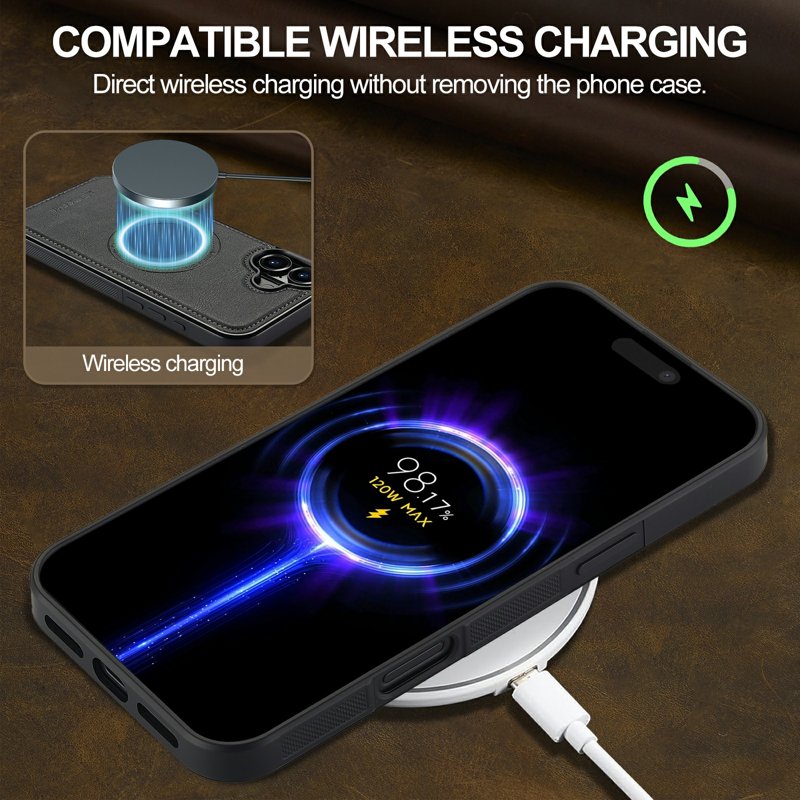 Upptäck LC.IMEEKE iPhone 16 Fodral i magnetiskt äkta läder. Detta fodral erbjuder både stil och funktionalitet. Med sin magnetiska design är det perfekt för användning med bilfästen. Det skyddar din telefon mot stötar och repor samtidigt som det möjliggör trådlös laddning. Håll din iPhone säker och elegant med detta premiumfodral.