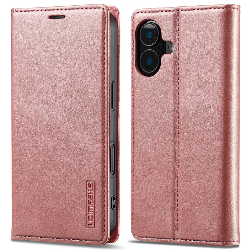 LC.IMEEKE iPhone 16 Plus Fodral Wallet Mikrofiberläder - Roséguld