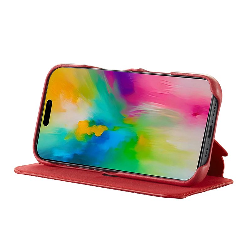 LC.IMEEKE iPhone 16 Pro Fodral Card Holder Äkta läder - Röd