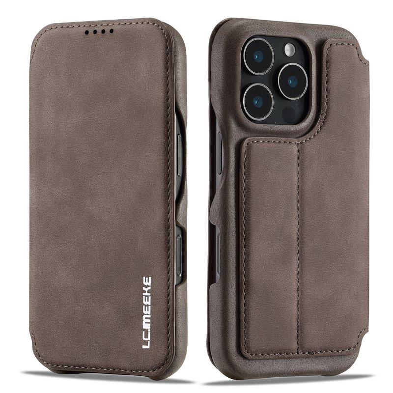 LC.IMEEKE iPhone 16 Pro Fodral Kortfack Äkta Läder - Kaffe