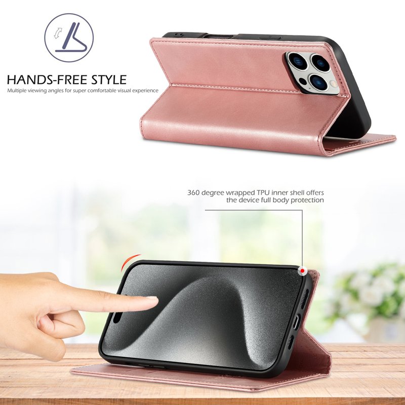 LC.IMEEKE iPhone 16 Pro Max Fodral Wallet Mikrofiberläder - Roséguld