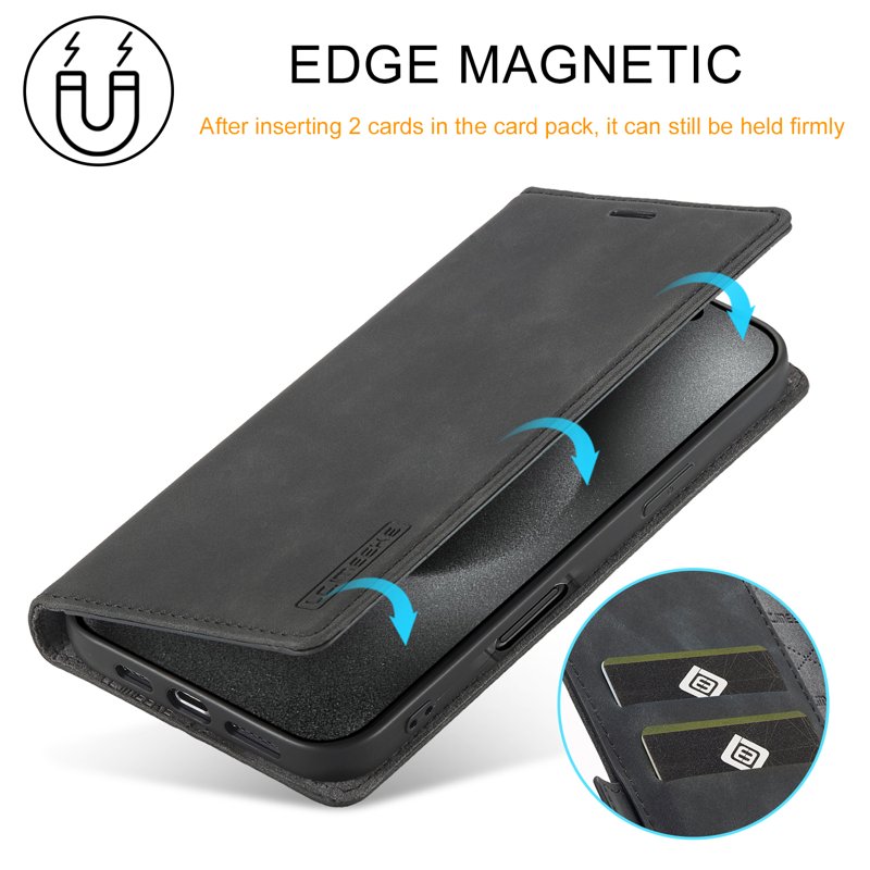 LC.IMEEKE iPhone 16 Pro Max Fodral Wallet Mikrofiberläder - Svart