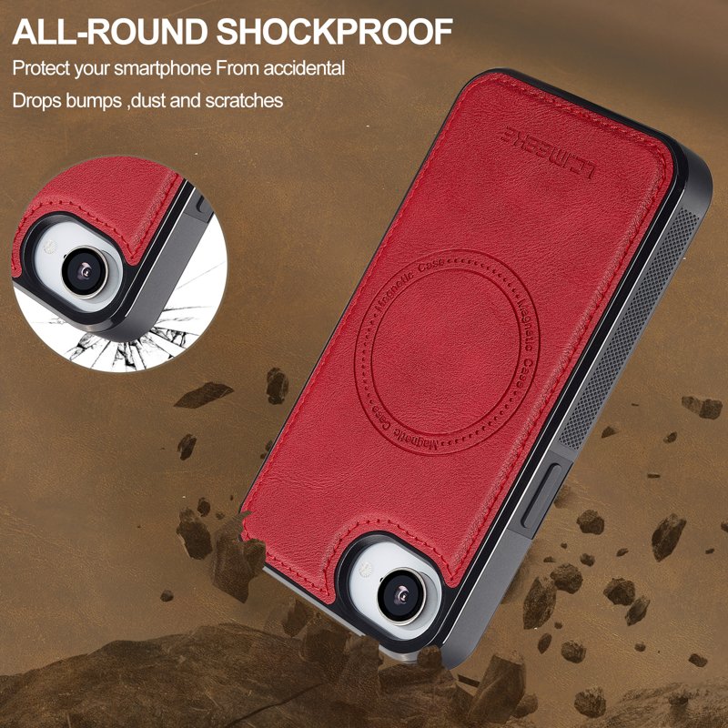 LC.IMEEKE iPhone 16e Fodral Äkta läder + TPU - Röd