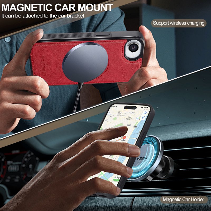 LC.IMEEKE iPhone 16e Fodral i Äkta Läder och TPU - Röd