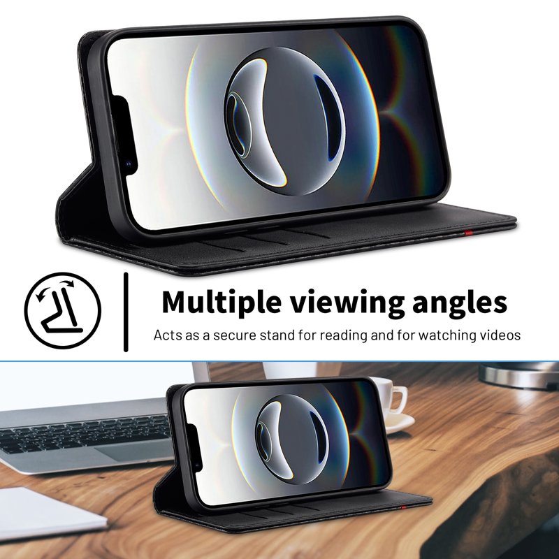 - Säker magnetstängning: Med en stark magnet säkerställs att din telefon, pengar och kort förvaras säkert.
