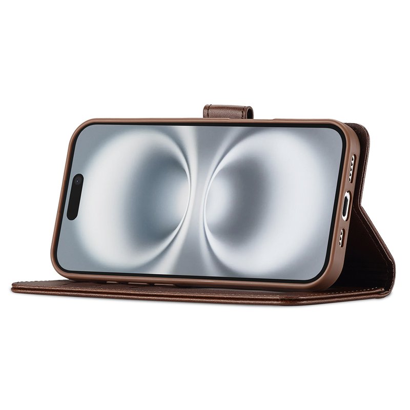 LC.IMEEKE iPhone 17 Fodral PU Läder Ställ Wallet - Brun