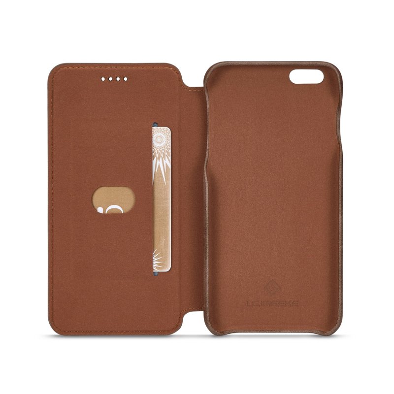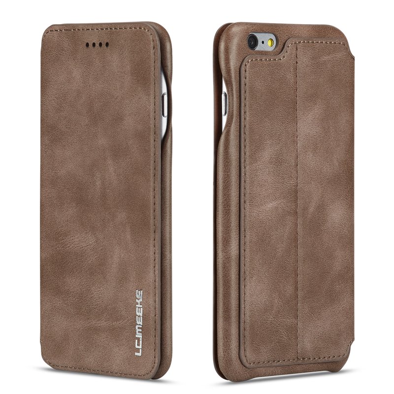 Upptäck LC.IMEEKE iPhone 6s Plus/6 Plus Retro Skal i äkta läder. Detta eleganta fodral erbjuder både stil och funktionalitet. Med en praktisk kortficka och en vikbar ställning är det perfekt för den moderna användaren. Skydda din telefon med stil och njut av enkel åtkomst till dina kort.