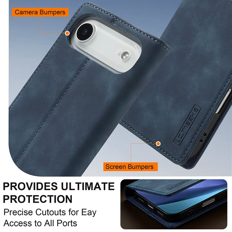 LC.IMEEKE iPhone Air Fodral Wallet Mikrofiberläder - Blå
