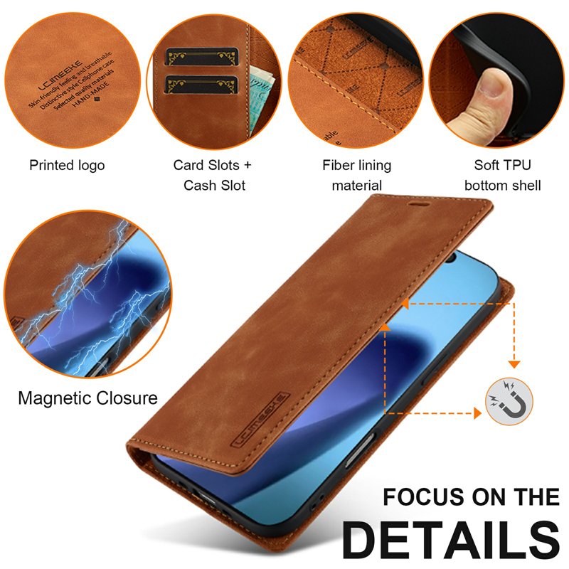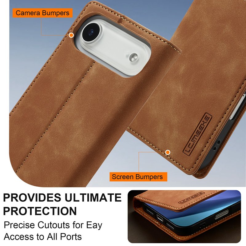 Upptäck LC.IMEEKE iPhone Air Fodral Wallet i mikrofiberläder. Detta bruna fodral kombinerar stil och funktionalitet. Det är perfekt för den som vill ha sina kort och sedlar nära till hands. Med högkvalitativt material och smart design erbjuder det ett utmärkt skydd för din enhet.