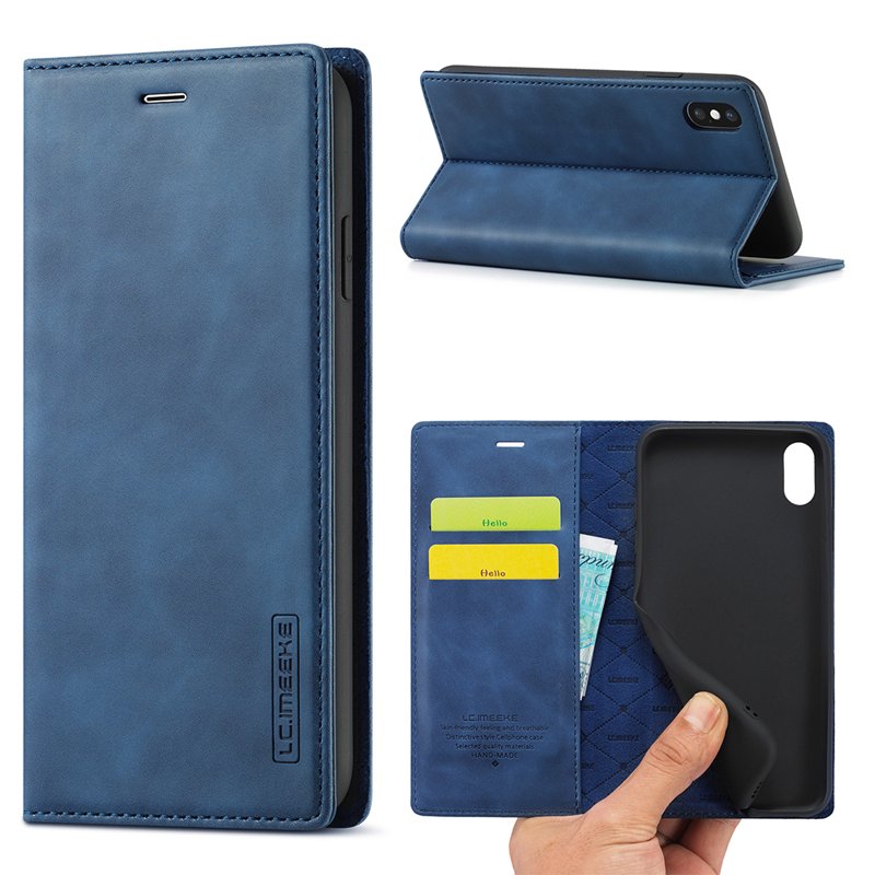 LC.IMEEKE iPhone XS Max Skal i Äkta Läder - Blå