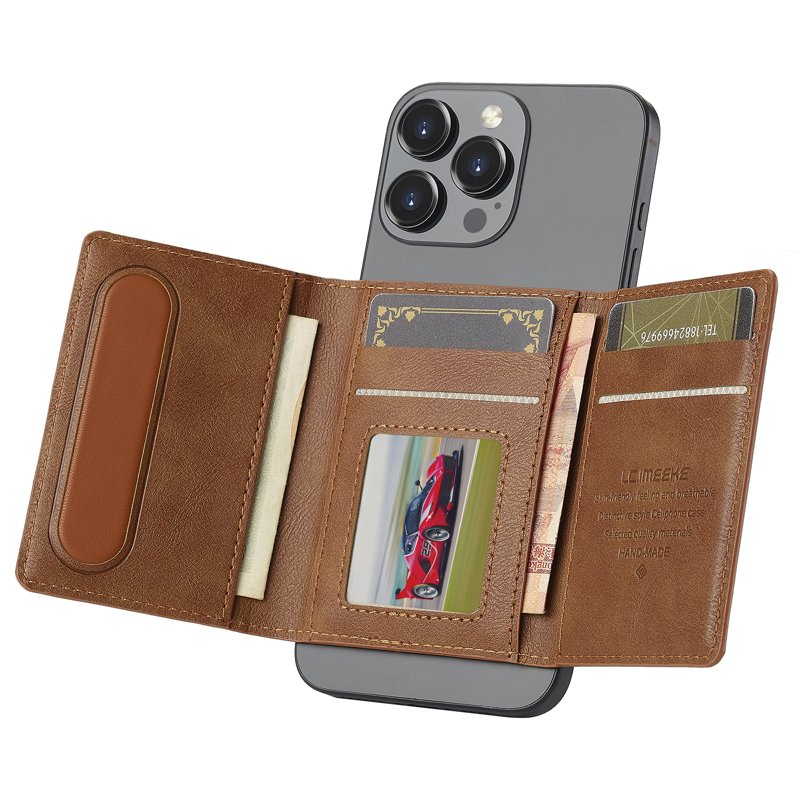 Upptäck LC.IMEEKE Kickstand Fodral för telefon i brun PU läder. Detta fodral kombinerar stil och funktionalitet. Med smart kortförvaring och RFID-skydd håller du dina kort säkra och lättillgängliga. Det är det perfekta valet för den moderna användaren som vill ha både elegans och praktiska lösningar.