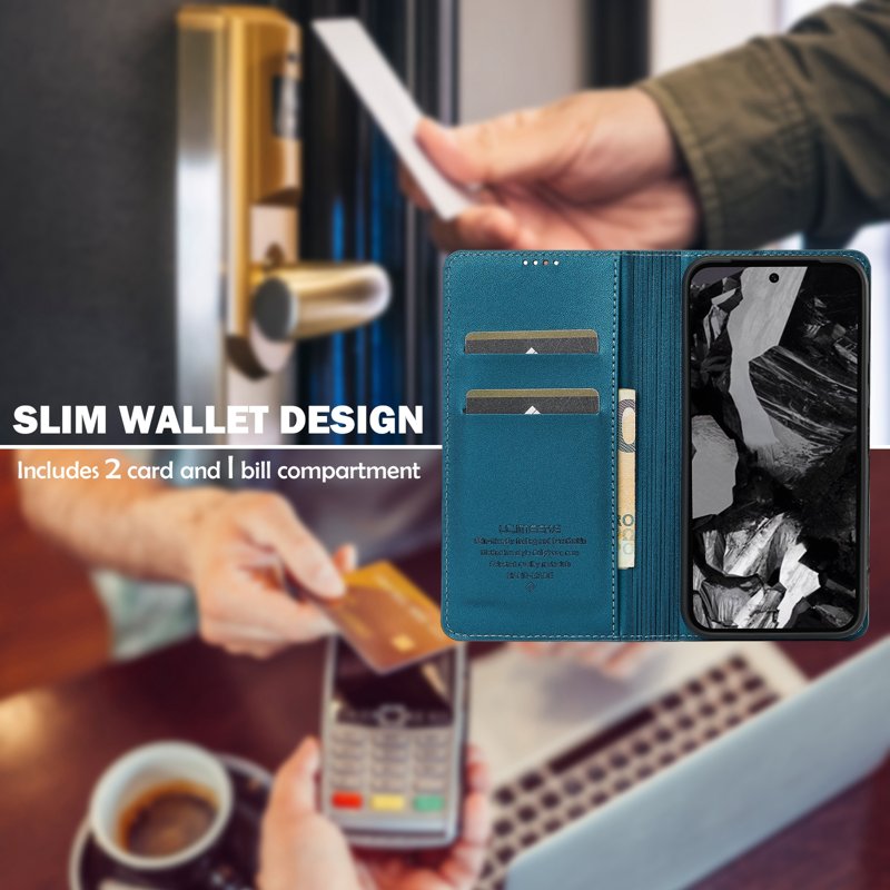 - Magnetisk stängning och plånboksfack: Utrustat med två kortfack och en sedelfack, perfekt för att bära med dig det viktigaste utan att öka volymen.