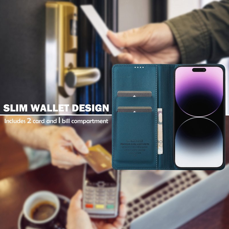 - Magnetisk stängning och plånboksfack: Två kortfack och ett sedelfack för att bära det nödvändigaste utan extra bulk.
