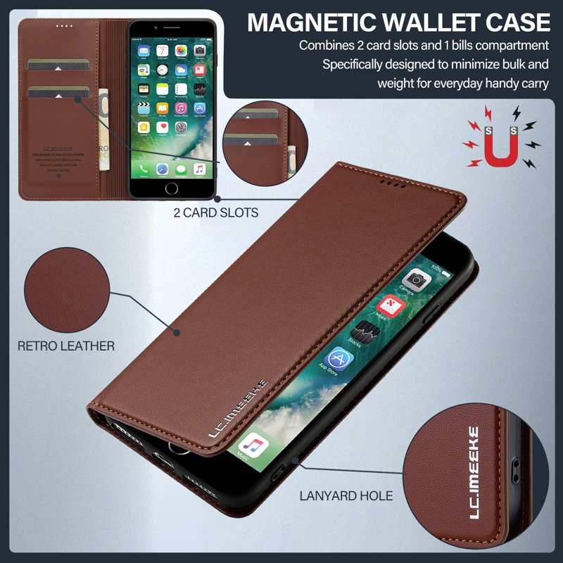 LC.IMEEKE L1 Series iPhone 8 Plus Fodral PU Läder - Brun