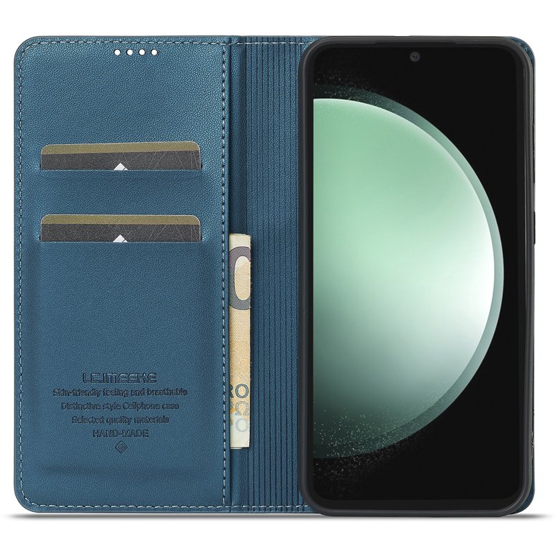 Upptäck LC.IMEEKE L1 Series fodral för Samsung Galaxy S23 FE. Detta fodral i PU-läder kombinerar stil och funktionalitet. Med förstklassiga material och militärklassad skyddsnivå skyddar det din telefon mot skador. Njut av enkel åtkomst till samtal och en praktisk plånboksdesign för dina kort.