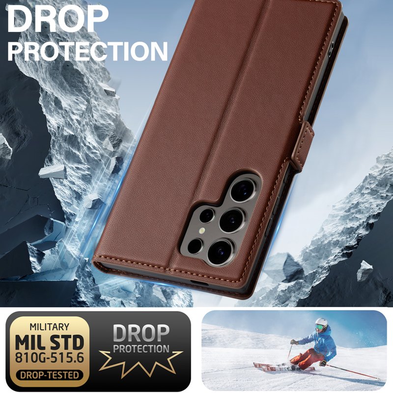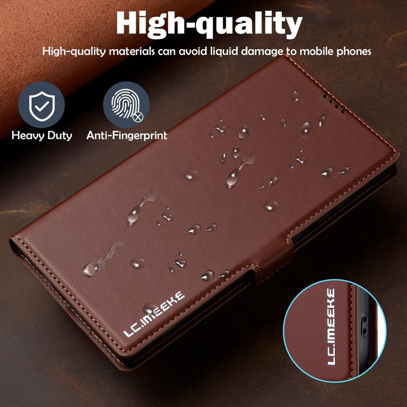 Upptäck LC.IMEEKE L1 Series fodral för Samsung Galaxy S23 Ultra. Detta eleganta fodral i brun PU-läder erbjuder överlägsen skydd och funktionalitet. Med fokus på både stil och säkerhet är detta fodral det perfekta valet för din smartphone.