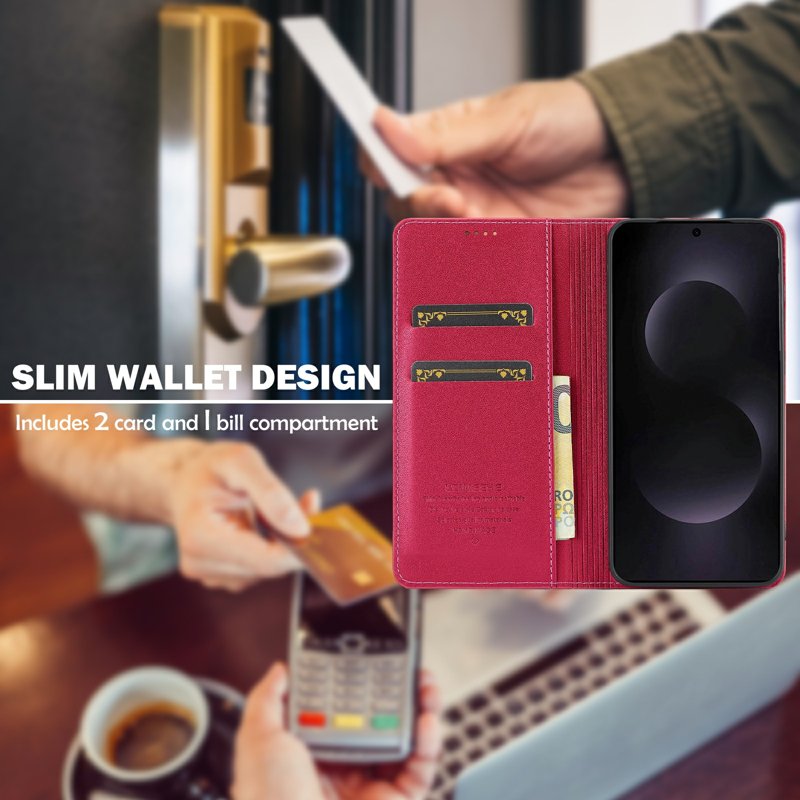 LC.IMEEKE L1 Series Samsung Galaxy S25 Edge Fodral i röd PU läder erbjuder både stil och skydd. Med detta fodral får du en elegant lösning som skyddar din telefon mot skador och repor. Fodralet är designat för att ge dig enkel åtkomst till funktioner samtidigt som det håller din enhet i toppskick.