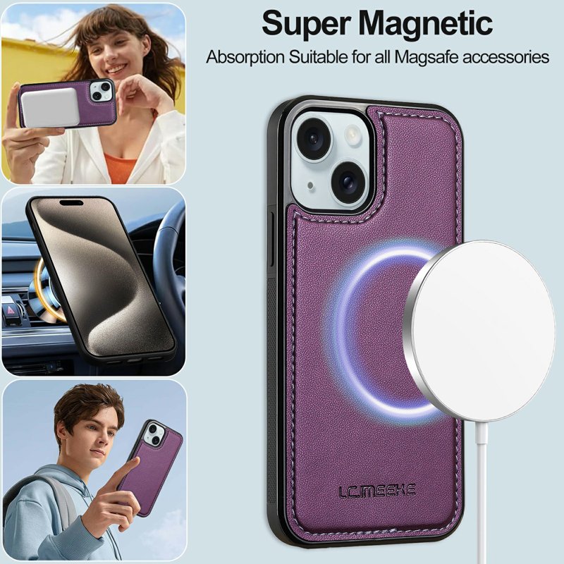LC.IMEEKE L2 Series iPhone 15 Fodral PU Läder - Lila