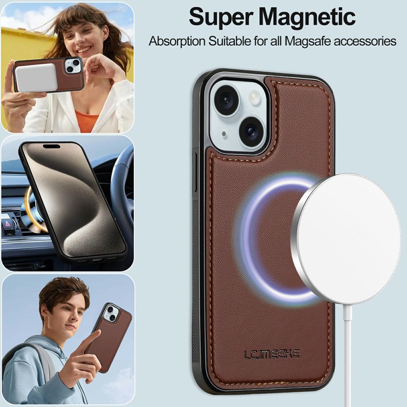 LC.IMEEKE L2 Series iPhone 15 Plus Fodral PU Läder - Brun